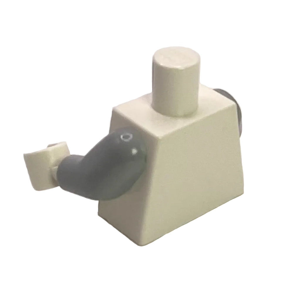 Sandy Cheeks with Yellow Acorn Badge LEGO® Minifigure Torso, LEGO® Part# 973pb0423c01. From the LEGO® Spongebob theme this torso has a yellow acorn badge pattern with light bluish gray arms and white hands.