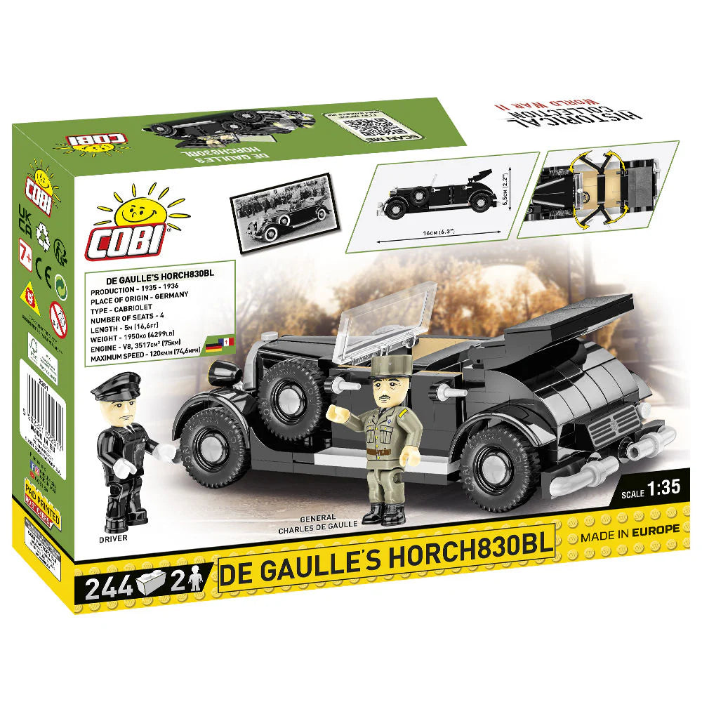 De Gaulle's Horch830BL is a set that brings with it a huge dose of history, which you will build with us, piece by piece! Sensationally reproduced in a 1:35 scale model, the car consists of 244 elements and complements the collection of vintage COBI cars. Bricks and figures depicting General Charles De Gaulle and the driver are covered with high-quality prints.