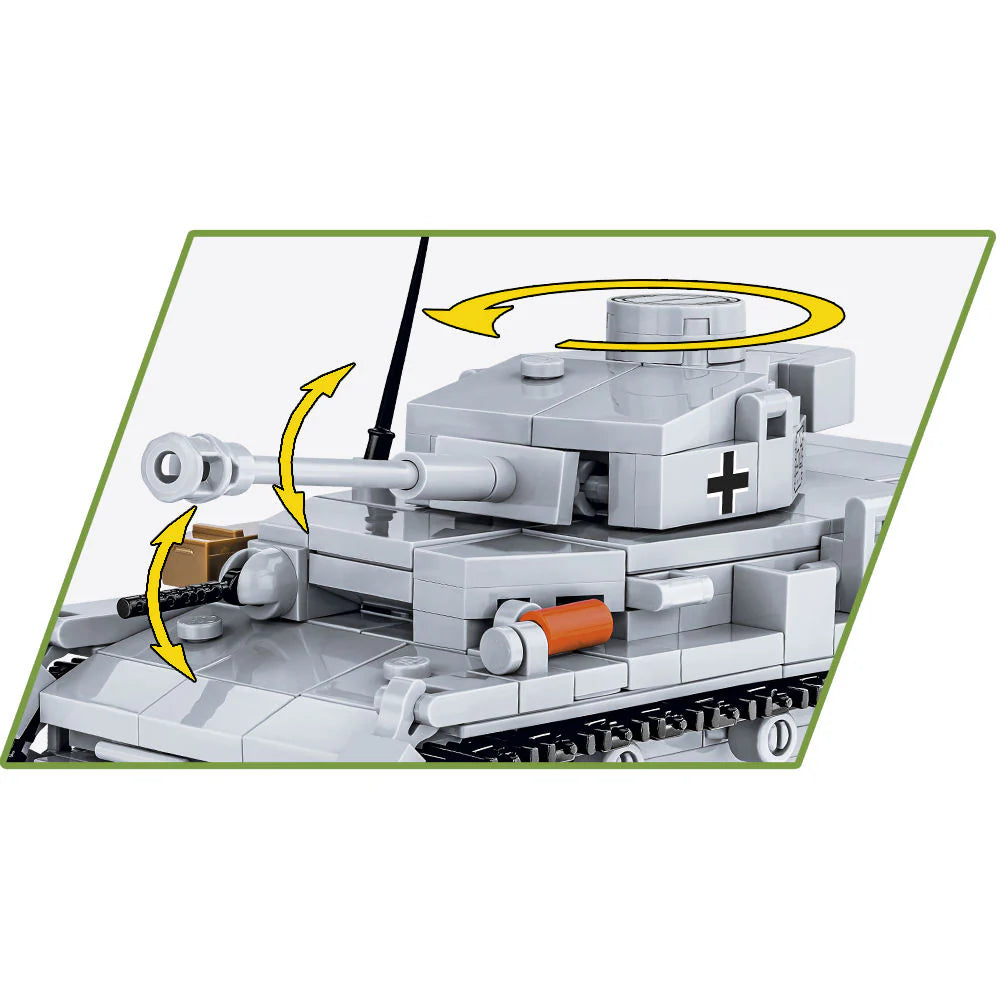The COBI block model Panther has been reproduced with attention to detail in a 1:48 scale. It has movable elements such as the turret and gun barrel, as well as rotating wheels and tracks. The advantage of the set consisting of 298 elements is a solid structure that faithfully reflects the original shapes of its historical inspiration. Our miniature tank has been covered with high-quality prints that do not wear off. The Panther completes our series of miniature tanks made in 1:48 scale, which will fit into any collection of a fan of military history and technology built of Polish COBI building blocks.