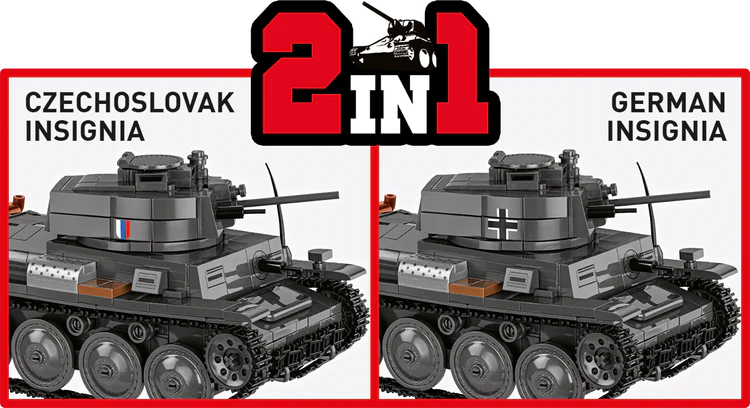 Discover the extraordinary 2-in-1 set from COBI, which allows you to build two historical tanks: the Czech LT vz. 38 and its German version, the Panzerkampfwagen 38(t)!