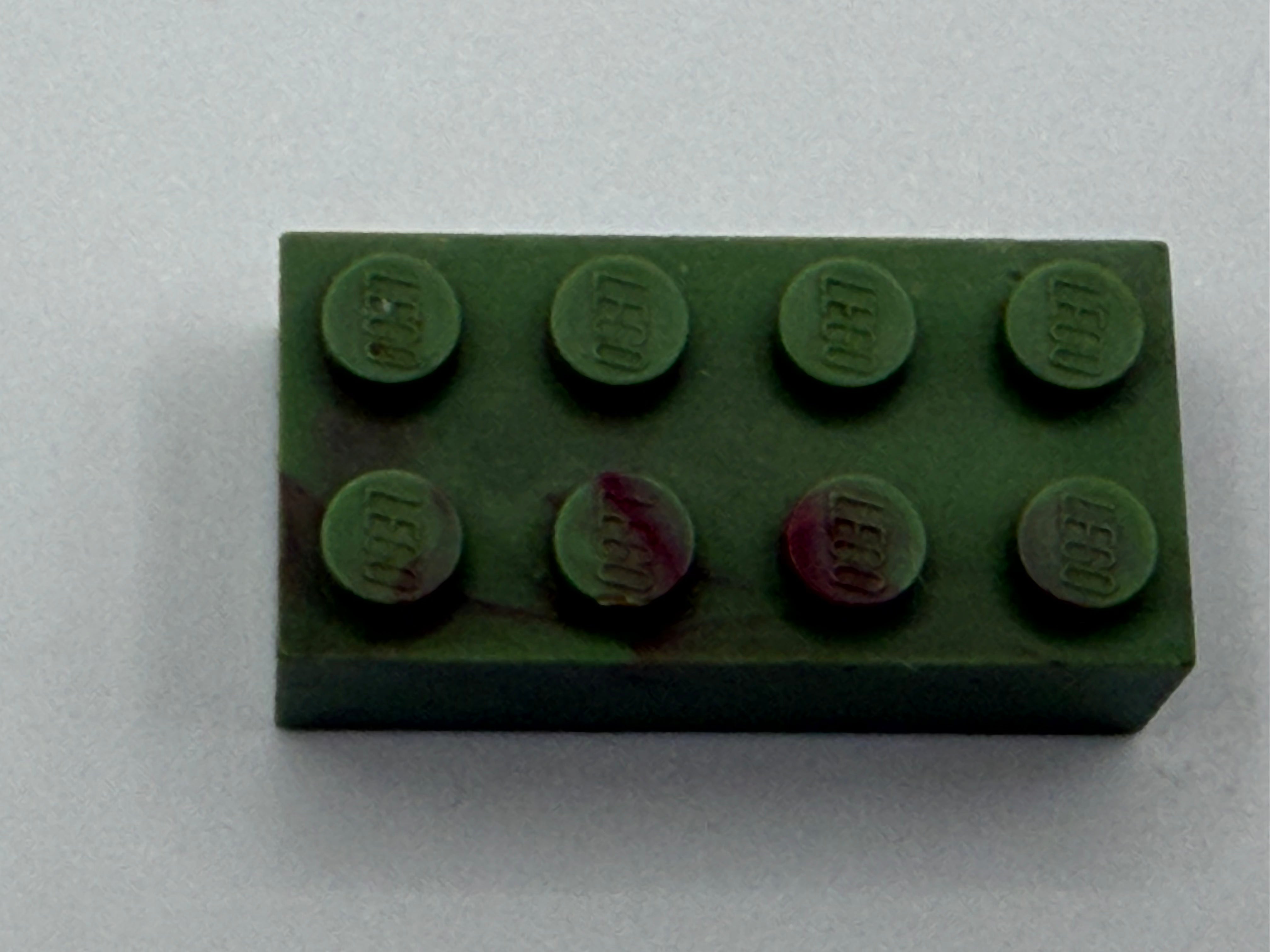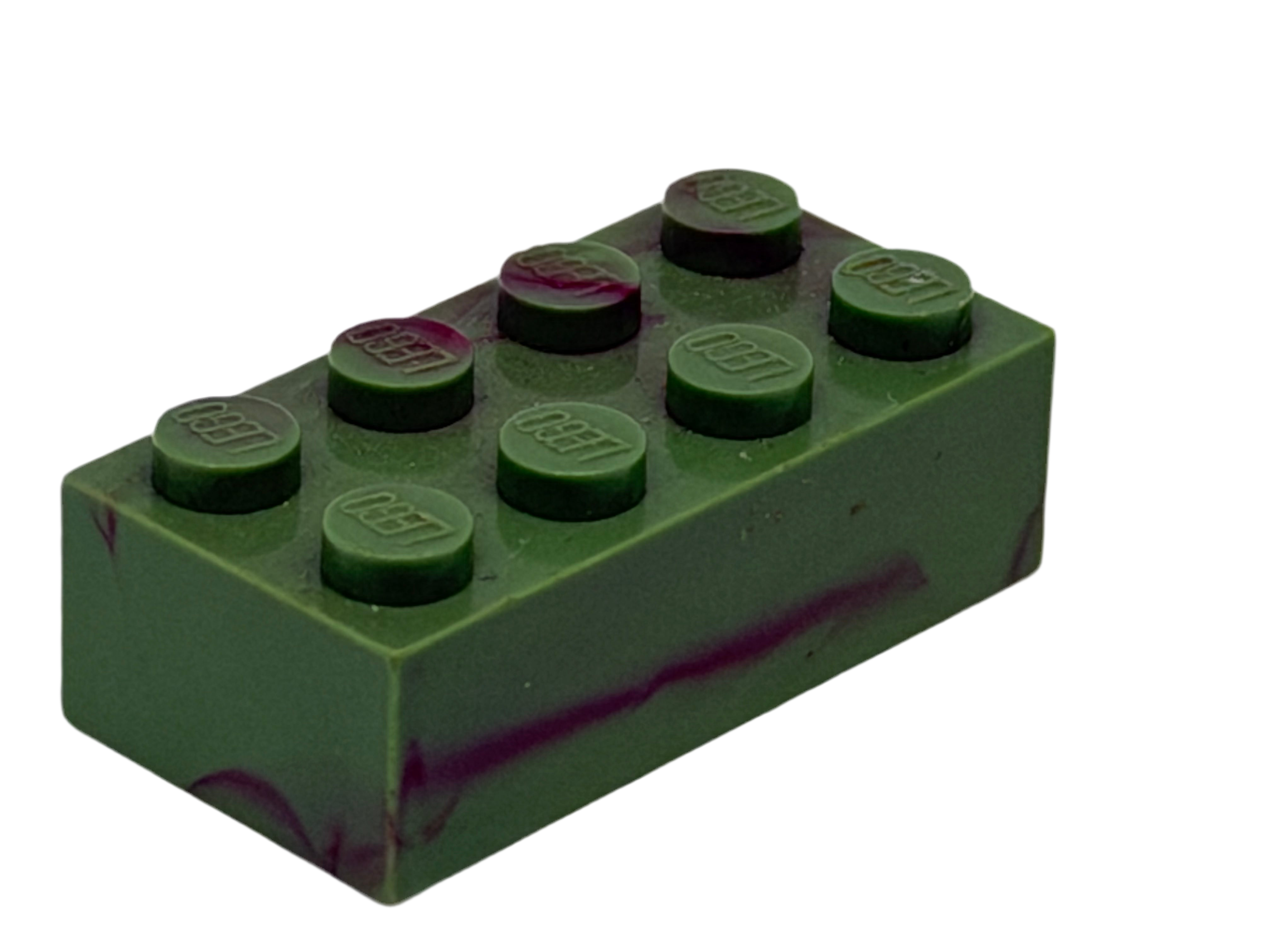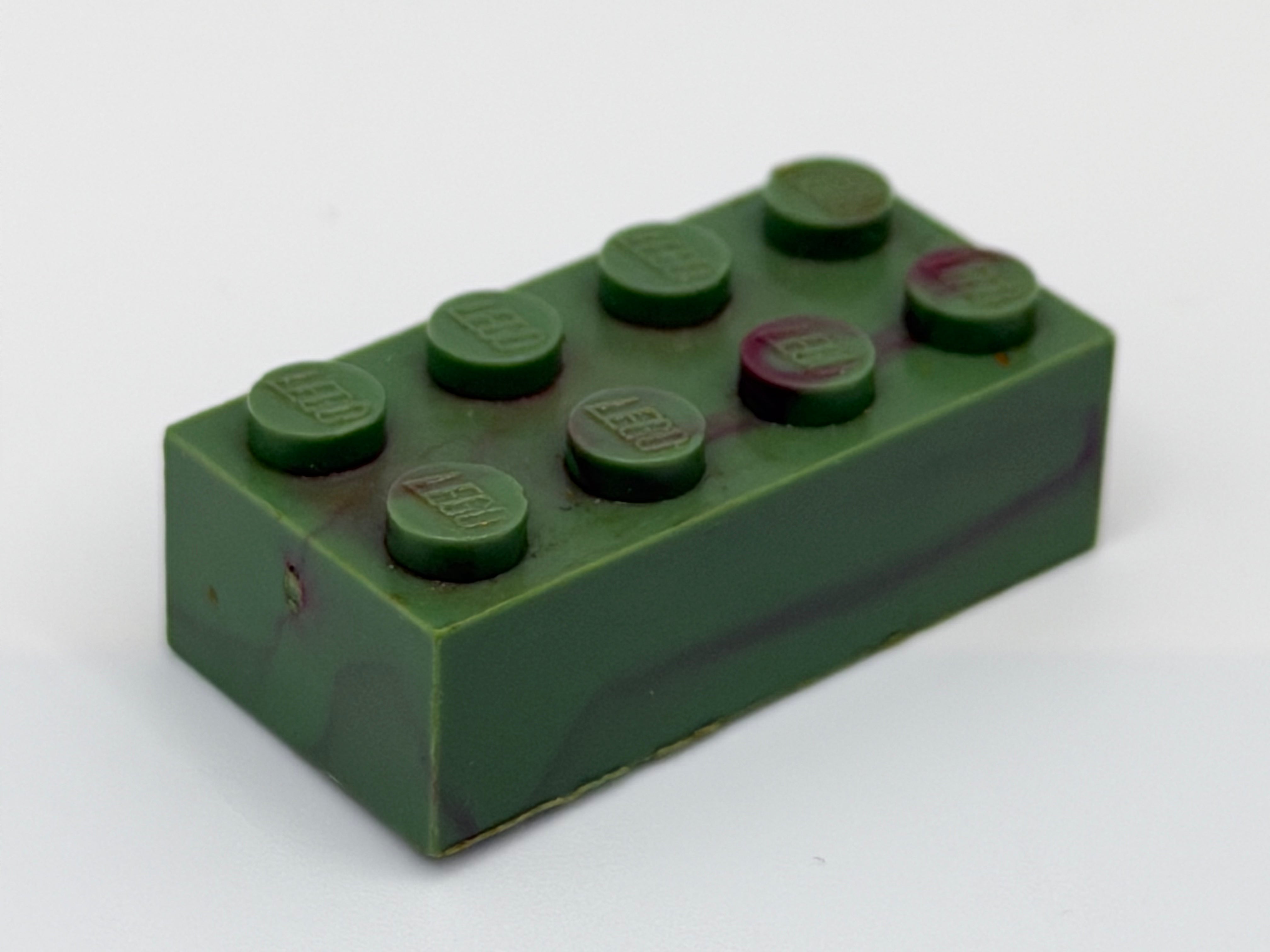 Military Green w/ Dark Red Marbled, 1970's Grangemouth Test 2x4 LEGO® Brick