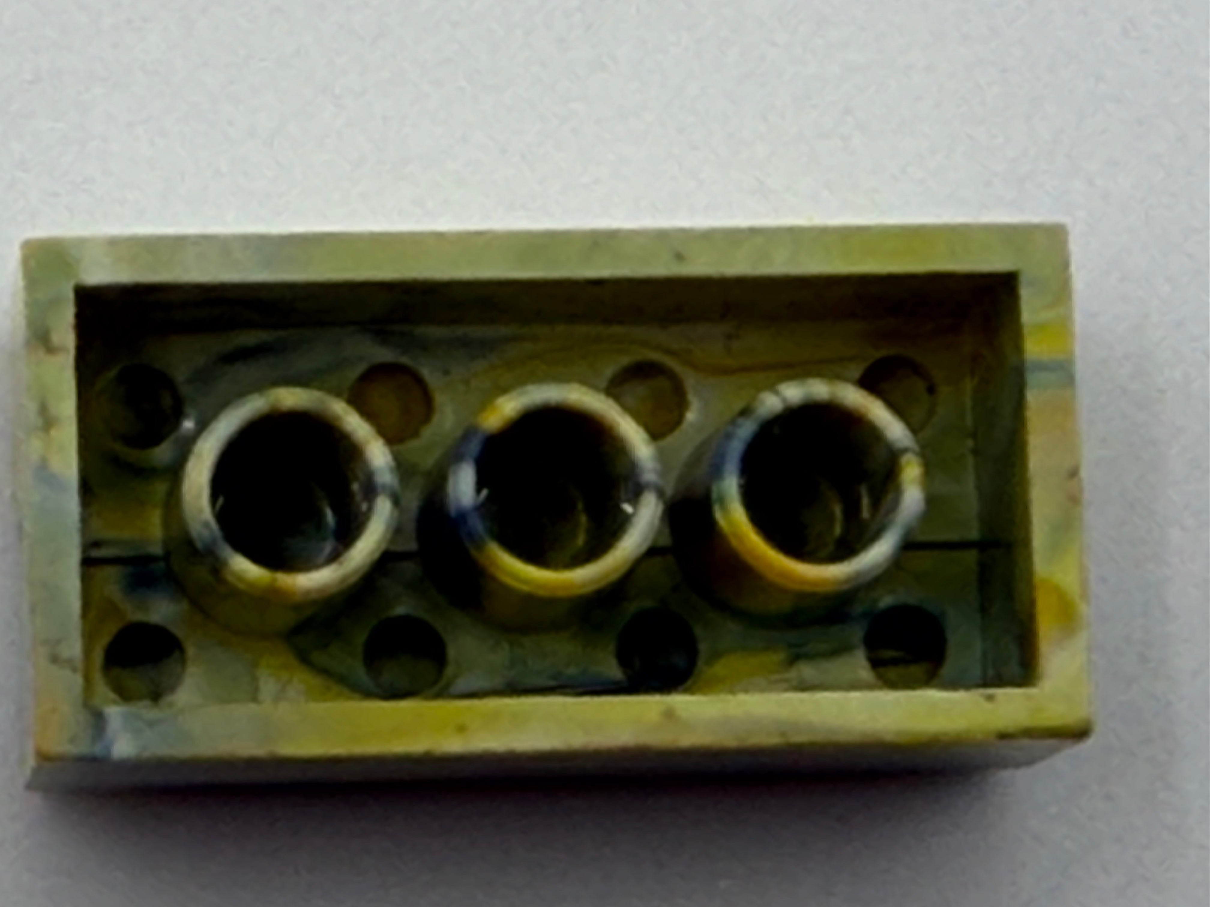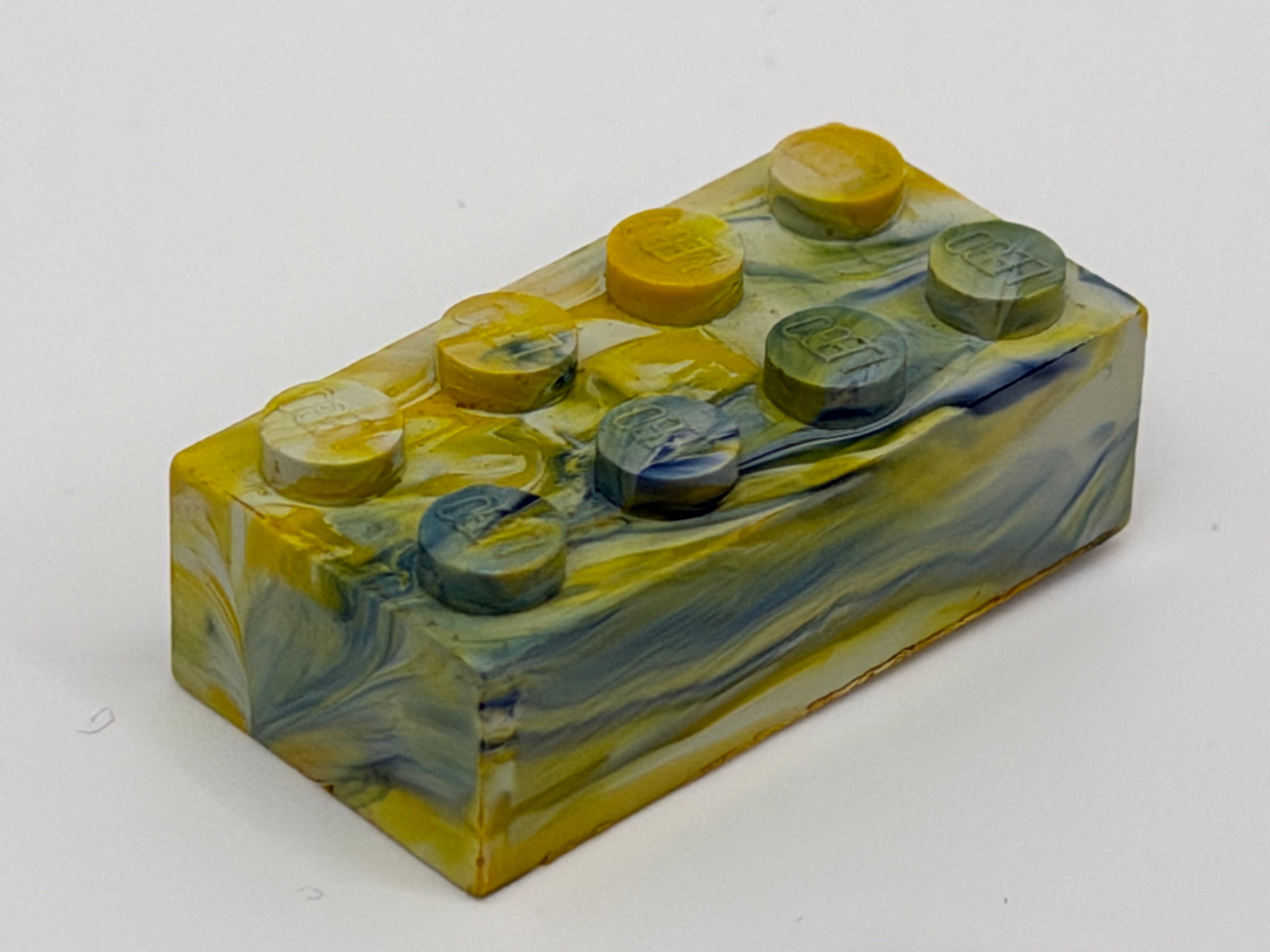 White, Yellow & Blue Marbled, 1970's Grangemouth Test 2x4 LEGO® Brick