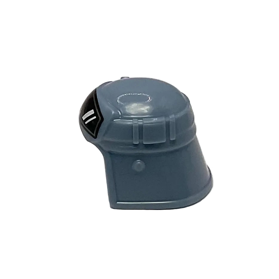 Minifigure, Headgear Helmet SW Imperial Pilot, Raised Forehead with Black Goggles with White Reflections and Silver Border Pattern, LEGO® Part# 36043pb02.