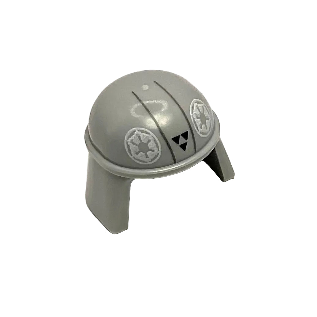 Minifigure, Headgear Helmet SW Imperial Pilot with White Imperial Logos, Black Triangles and Dark Bluish Gray Lines Pattern, LEGO® Part# 57900pb02.
