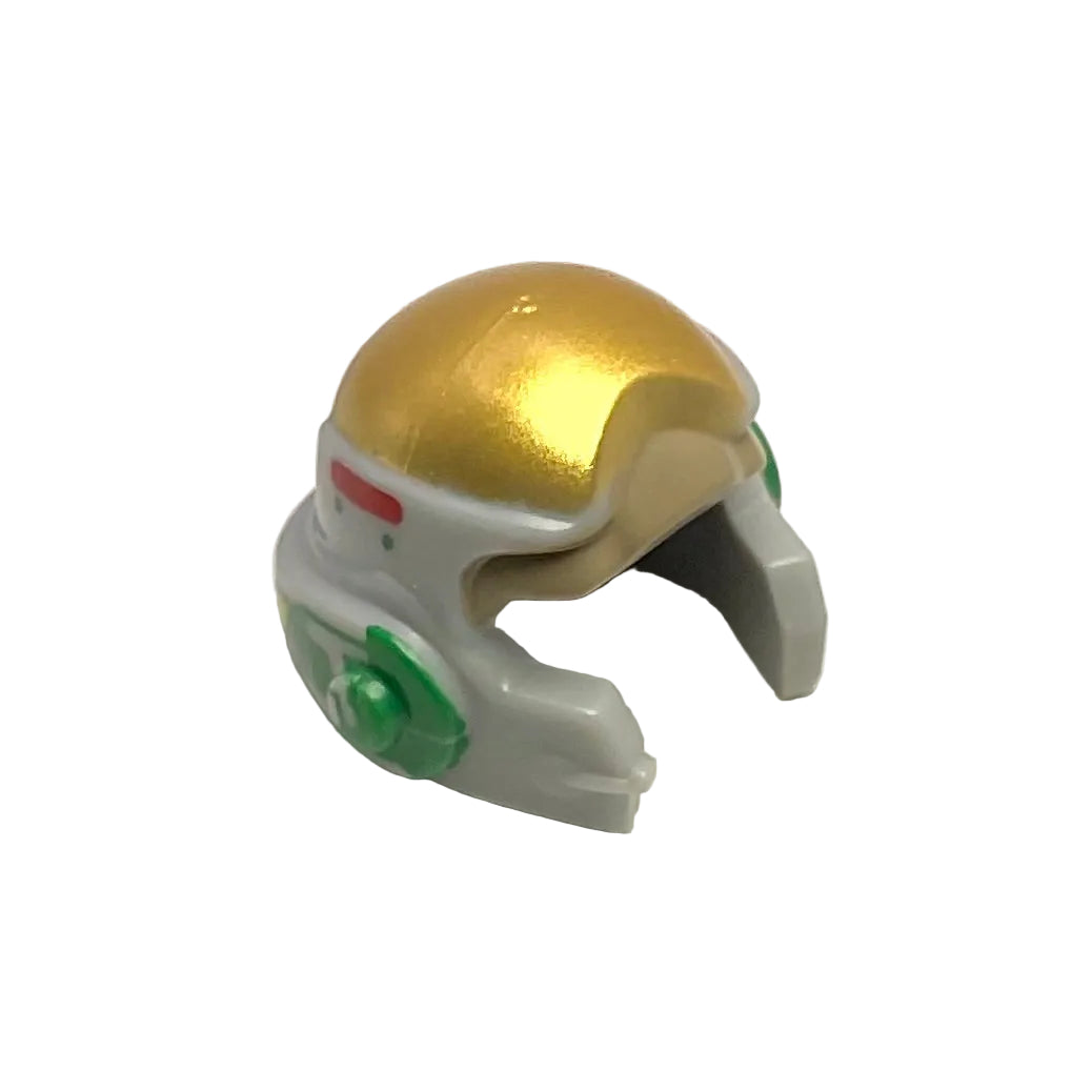 Minifigure, Headgear Helmet SW Rebel with Dark Tan, Gold and Green A-Wing Pilot Pattern, LEGO® Part# 11538pb04.