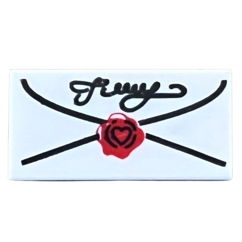 Tile 1 x 2 with Envelope with Red Wax Seal and Black Script Pattern LEGO® Part# 3069px40