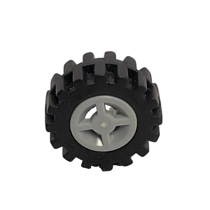 Wheel 8mm D. x 6mm with Black Tire 15mm D. x 6mm Offset Tread Small - Band Around Center of Tread (4624/87414), LEGO® Part# 4624c06.