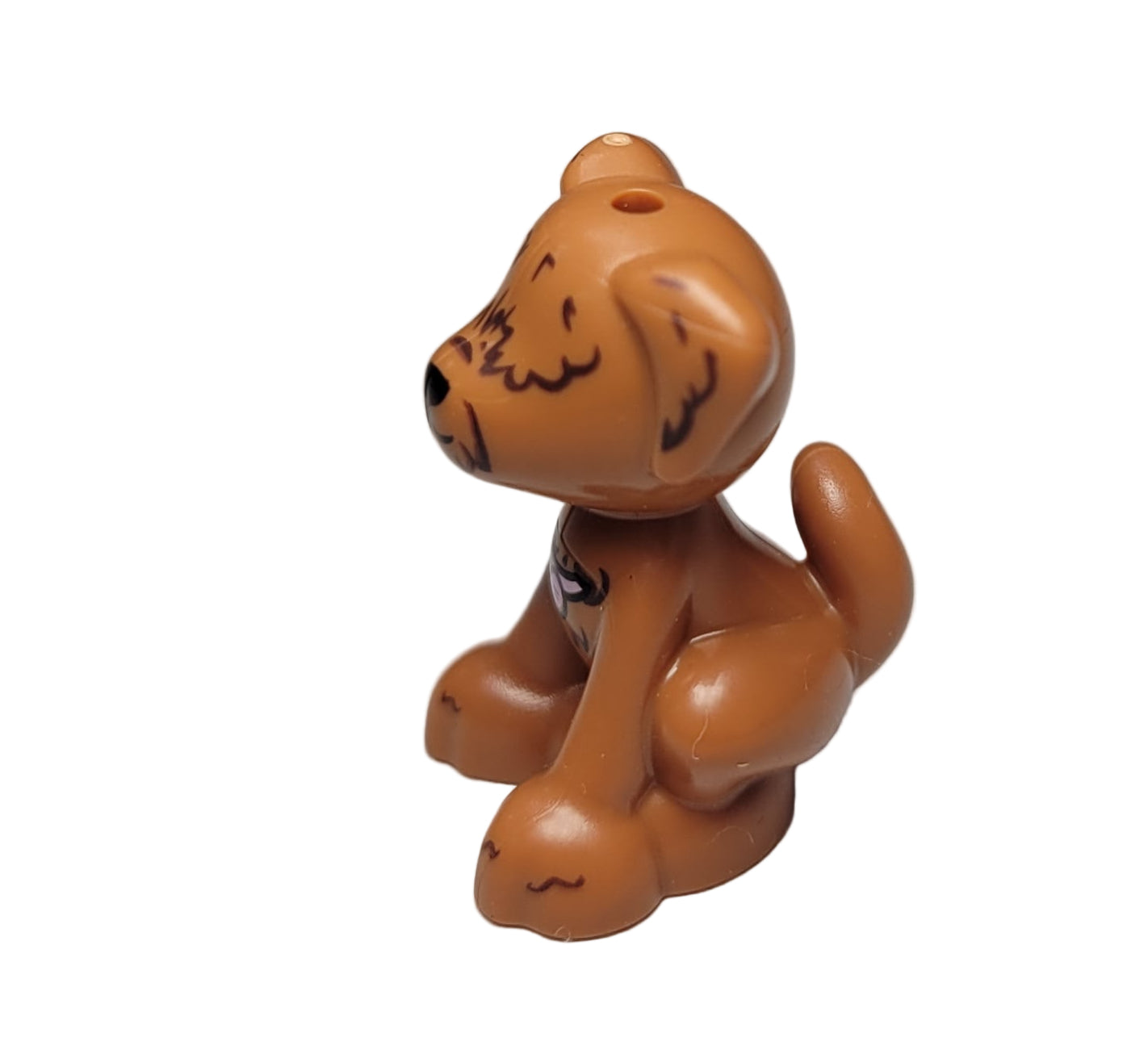 Dog, Friends Style, Labrador / Labradoodle, Sitting with Black Nose and Mouth, Dark Brown Hair over Eyes and Bright Pink Collar with Name Tag Pattern (Guba)