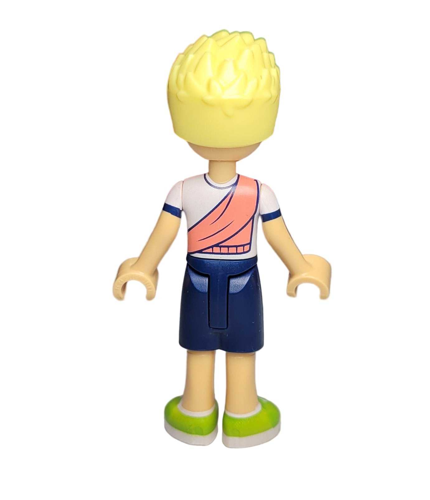 Friends Olly - White Shirt with Coral Scarf, Dark Blue Shorts, Lime Shoes