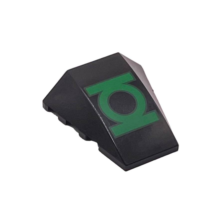 Wedge 4 x 4 Triple Curved No Studs with Green Lantern Logo Pattern, LEGO® Part# 47753pb076.